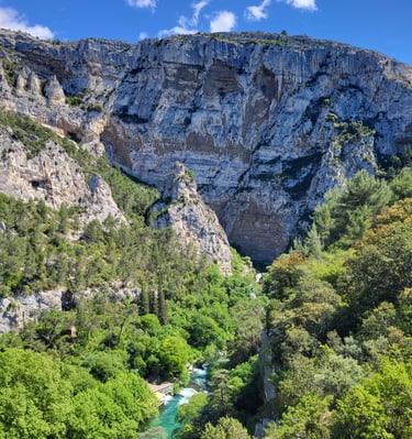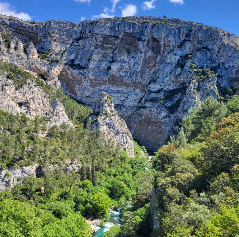 Ce petit village protégé de falaises de 200m a donné son nom au département du Vaucluse. On l'appelait auparavant "Vallis Clausa", la vallée close. Au pied des parois, vous y trouverez la source de la Sorgue, plus grande exsurgence de France